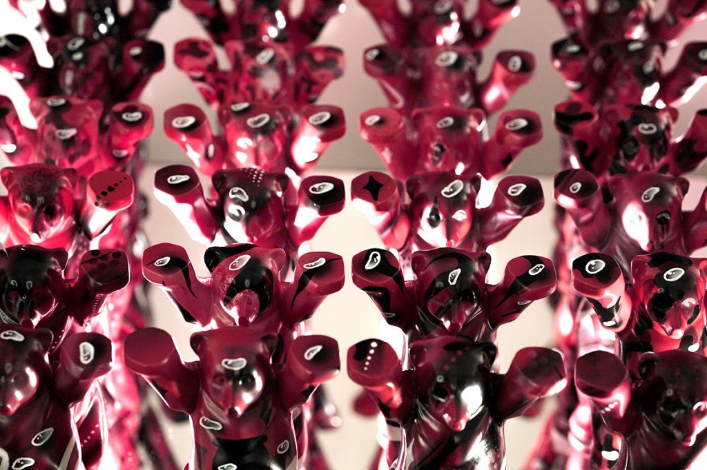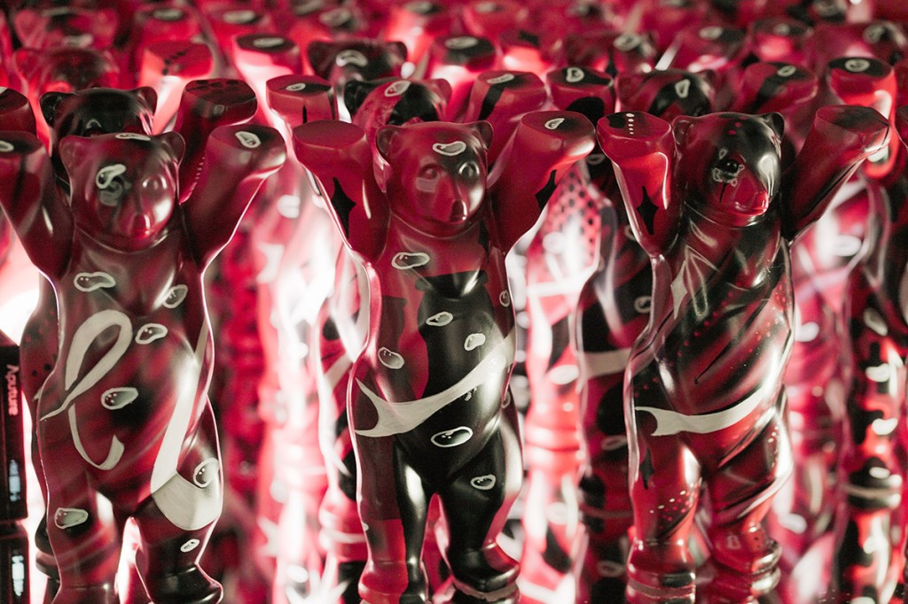 For an event by the Coca Cola company I handpainted 30 custom Berlin Buddy Bears. They are about 29 cm and each one is an unique peace of art. I used acrylics, spray paint and airbrush to realise this army of little buddies. Had a lot of fun with this project.