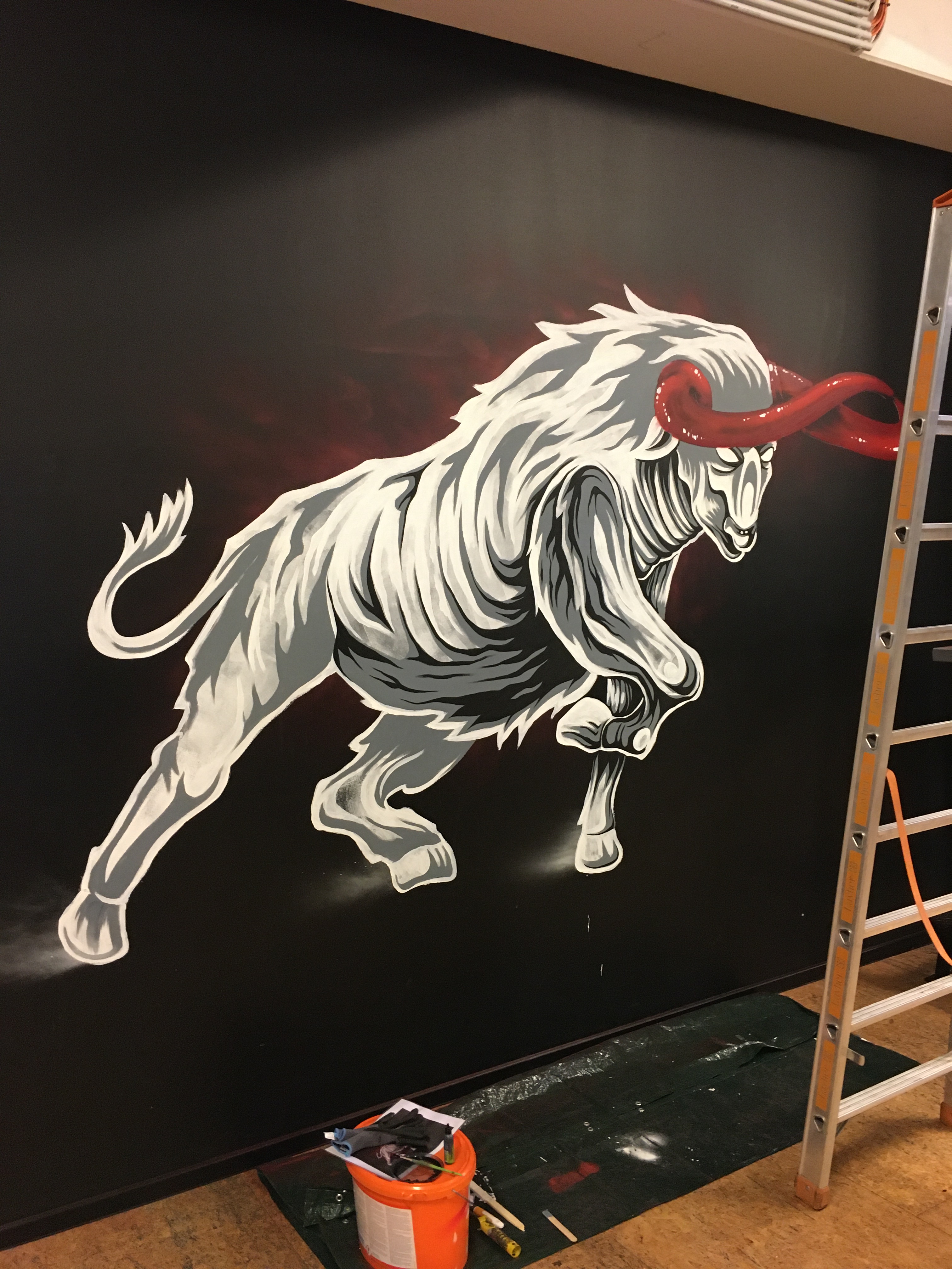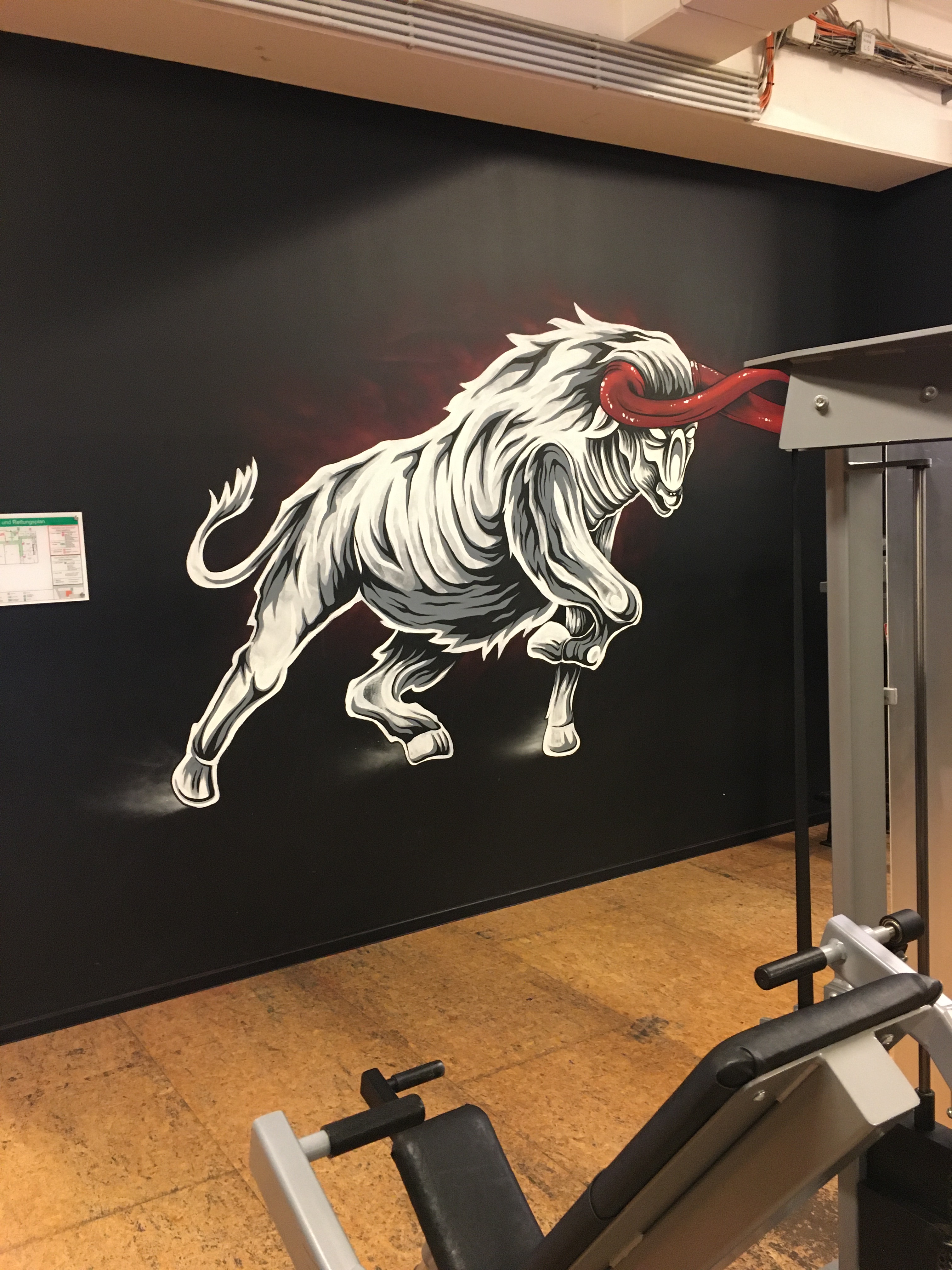 For the McFit gym in Berlin Mahlsdorf I’ve painted a bull and some typeface. Always enjoying commisioned wall projects like this. Thanks for curating to Street Art Berlin.